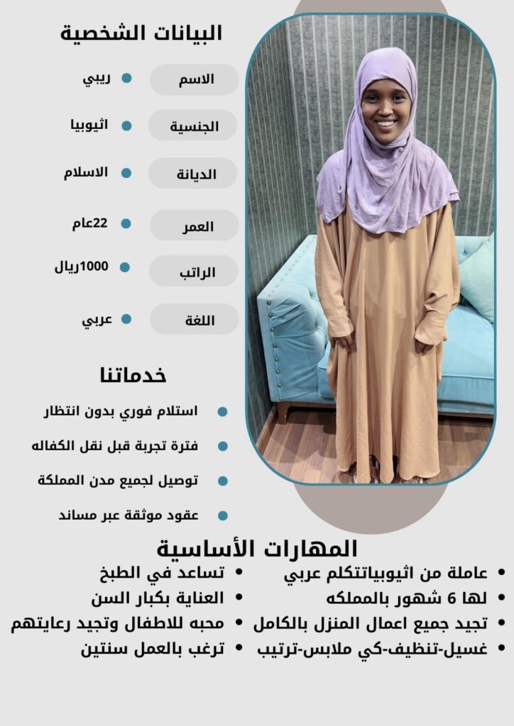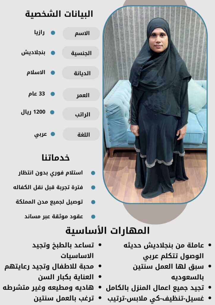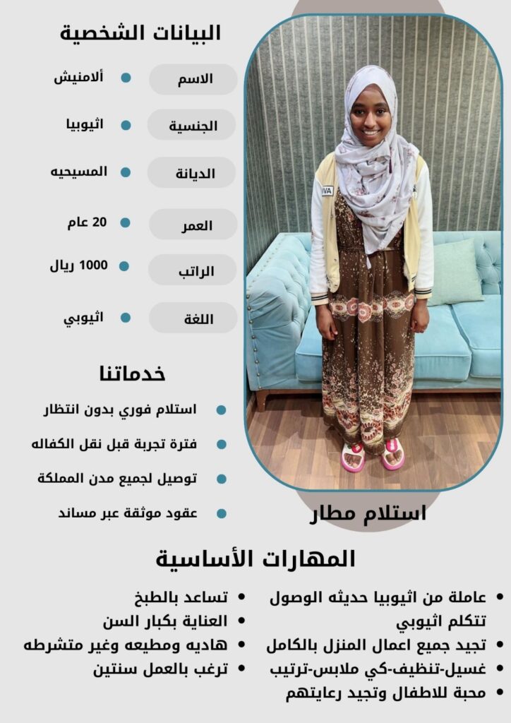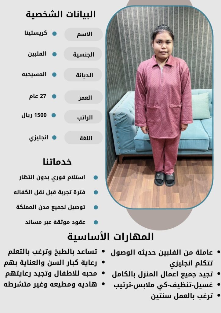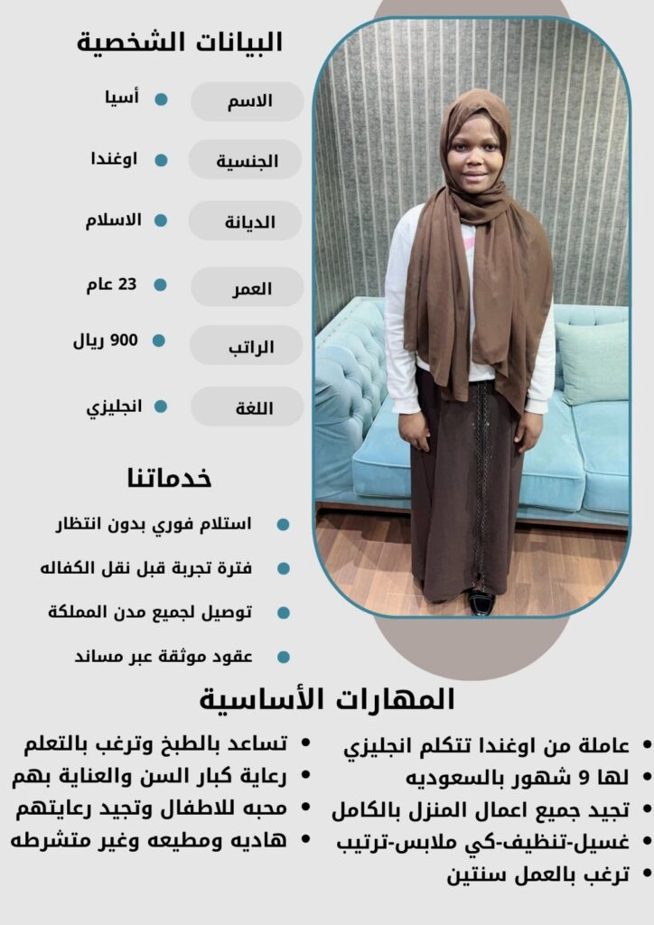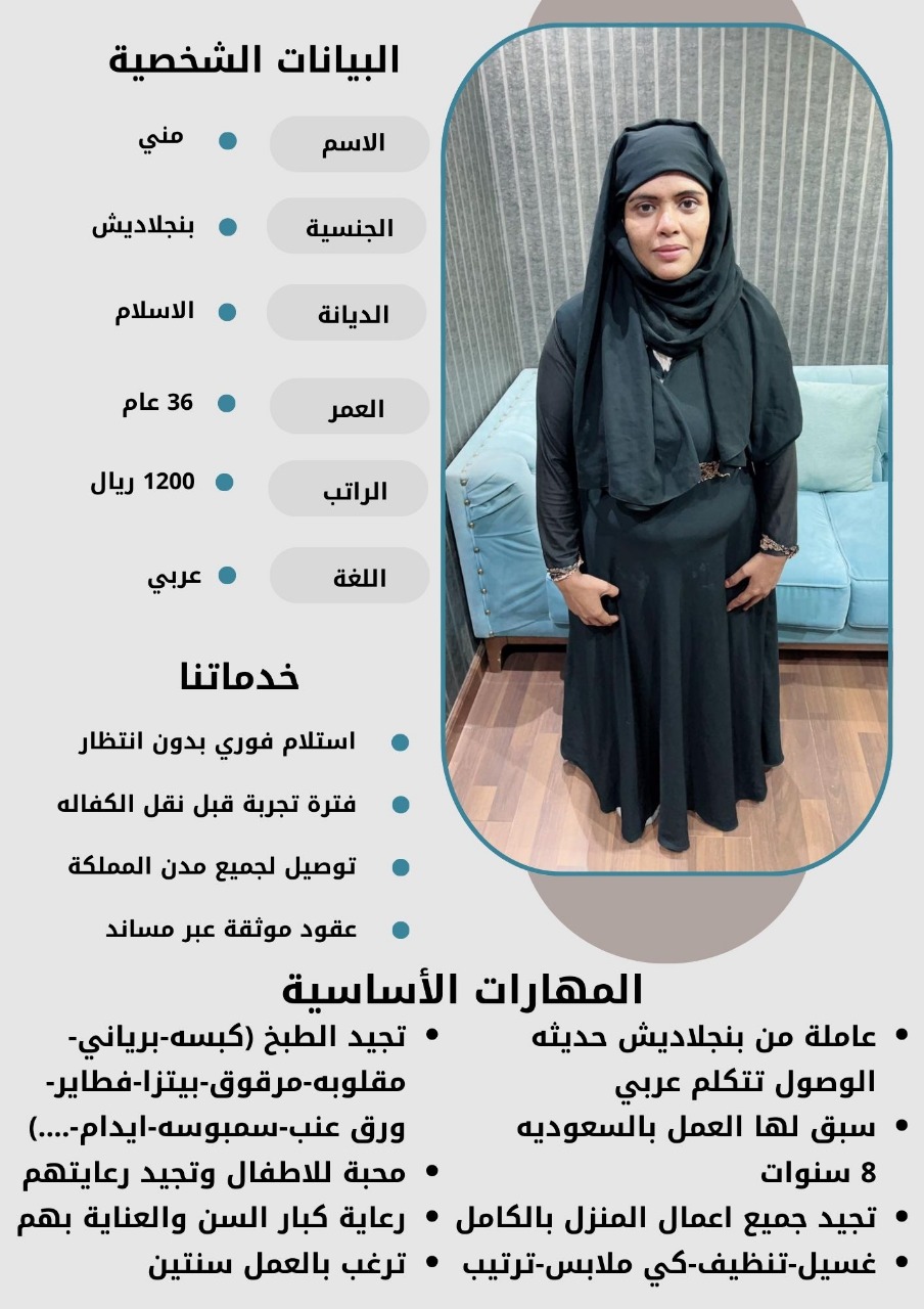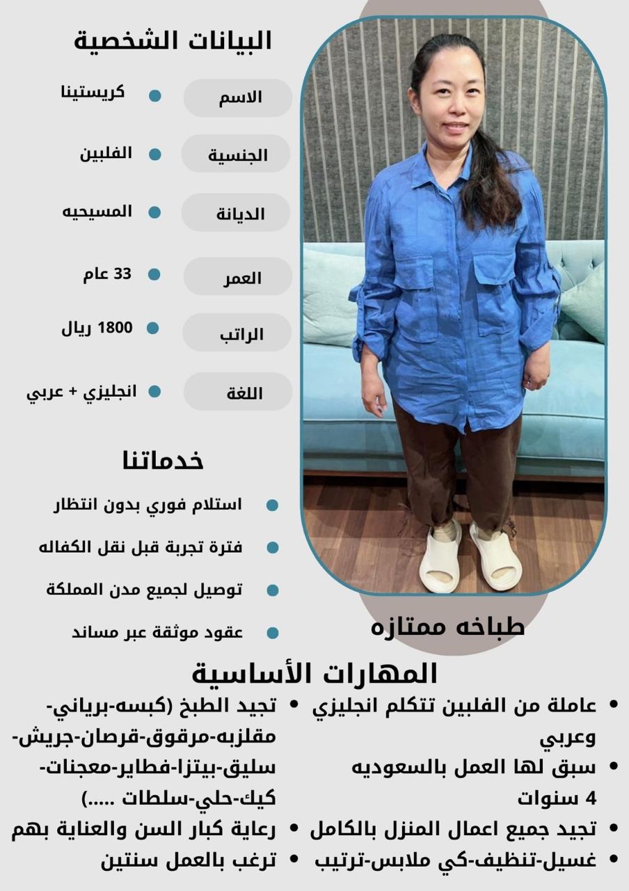 - نقدم لكم خيارات متعددة من العاملات بمختلف الجنسيات والأعمار لتناسب احتياجاتكم الخاصة.
