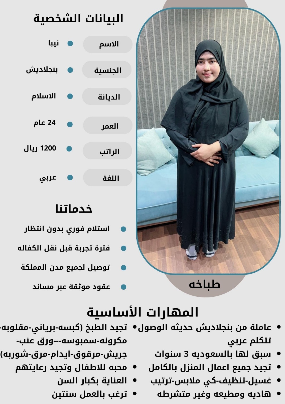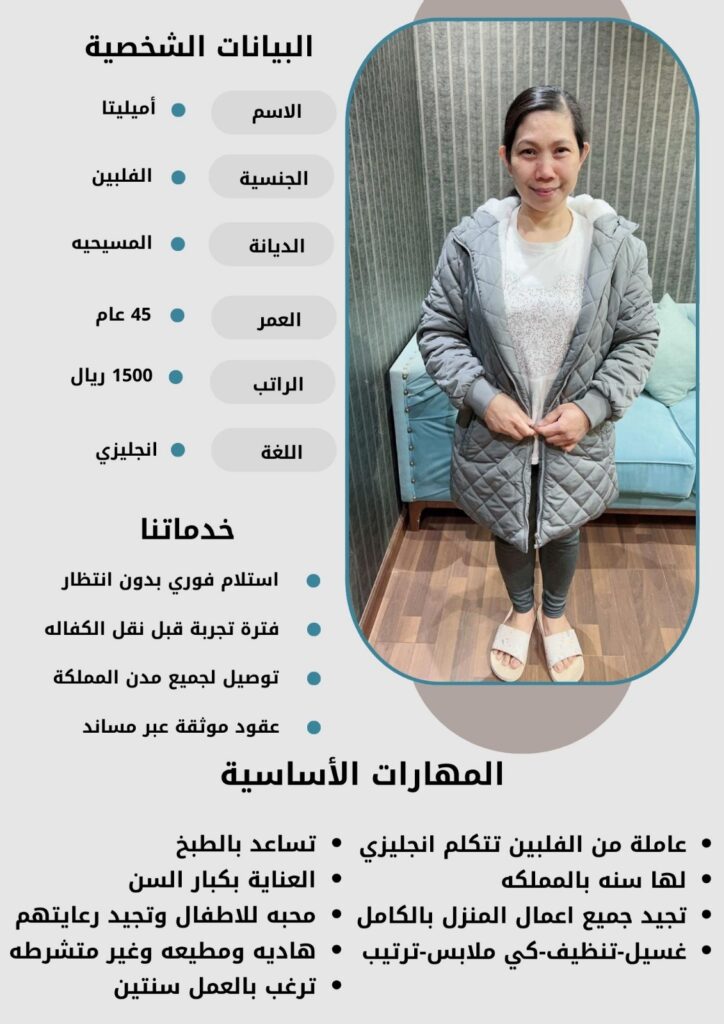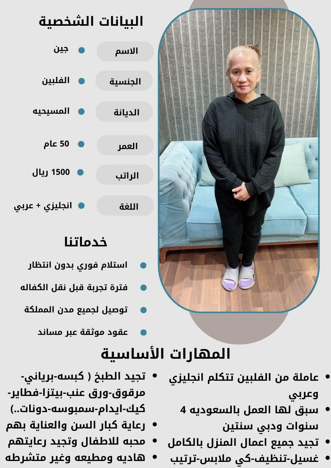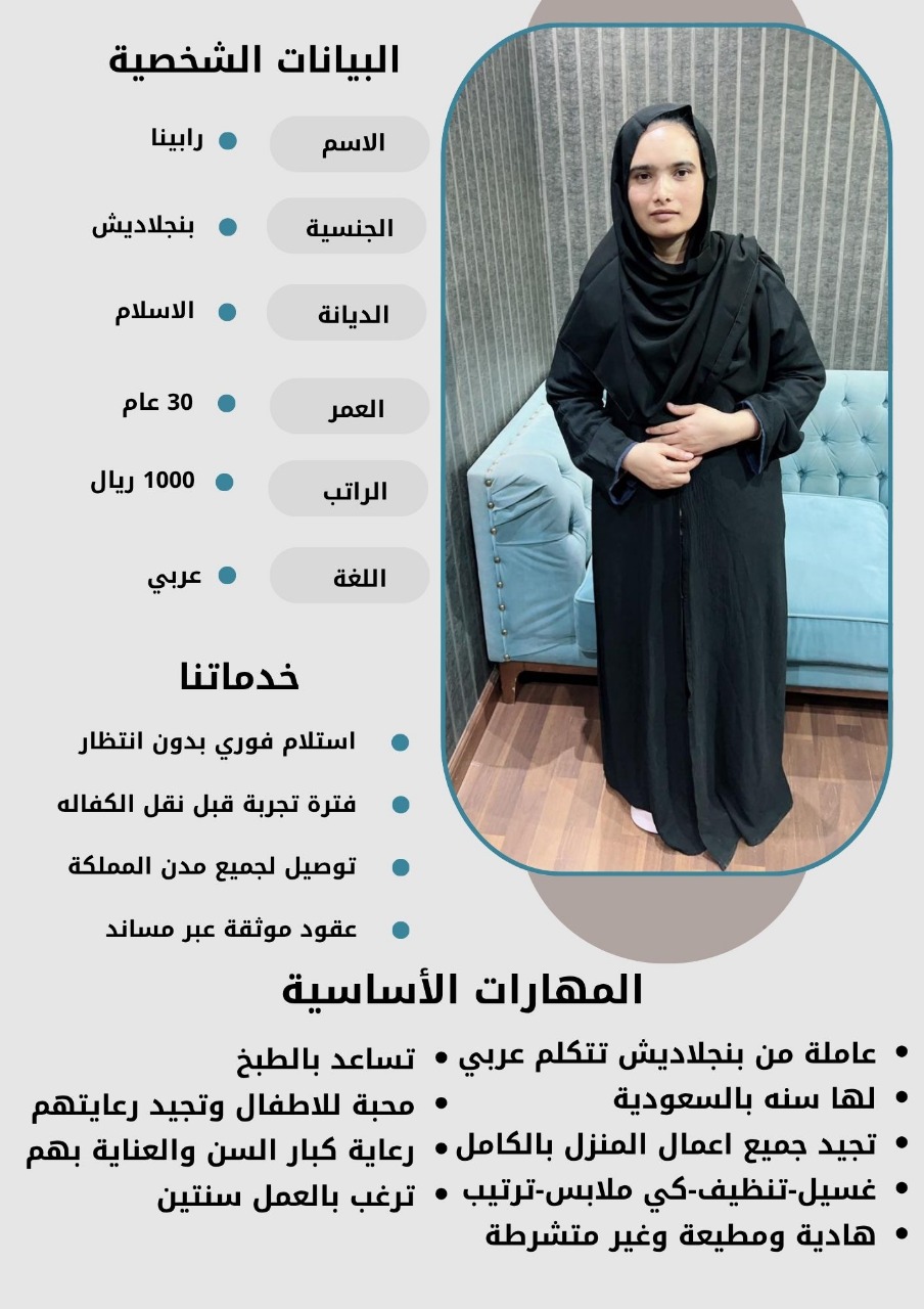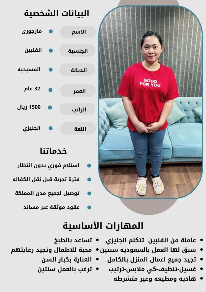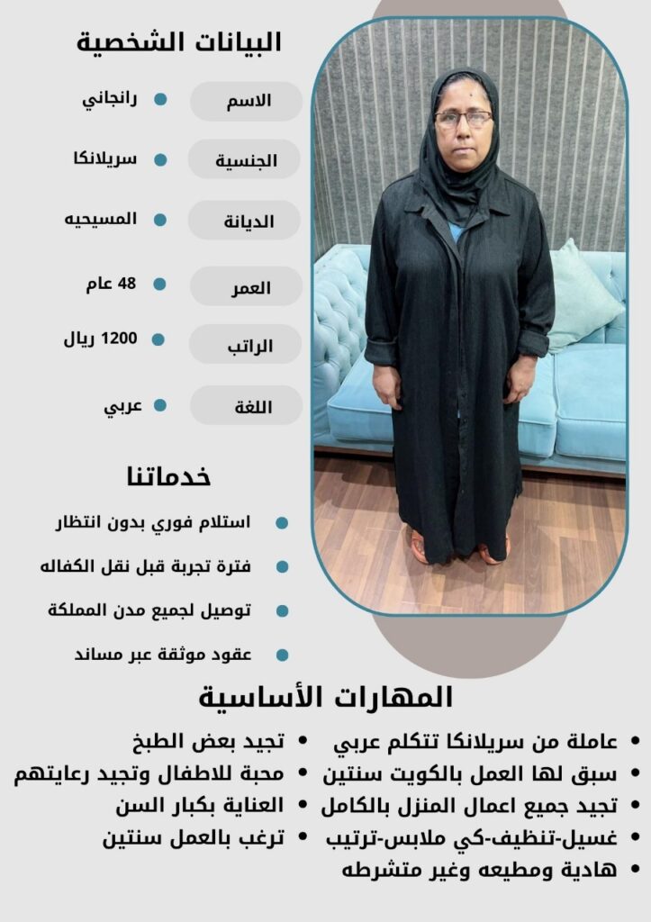 - نقدم لكم خيارات متعددة من العاملات بمختلف الجنسيات والأعمار لتناسب احتياجاتكم الخاصة.