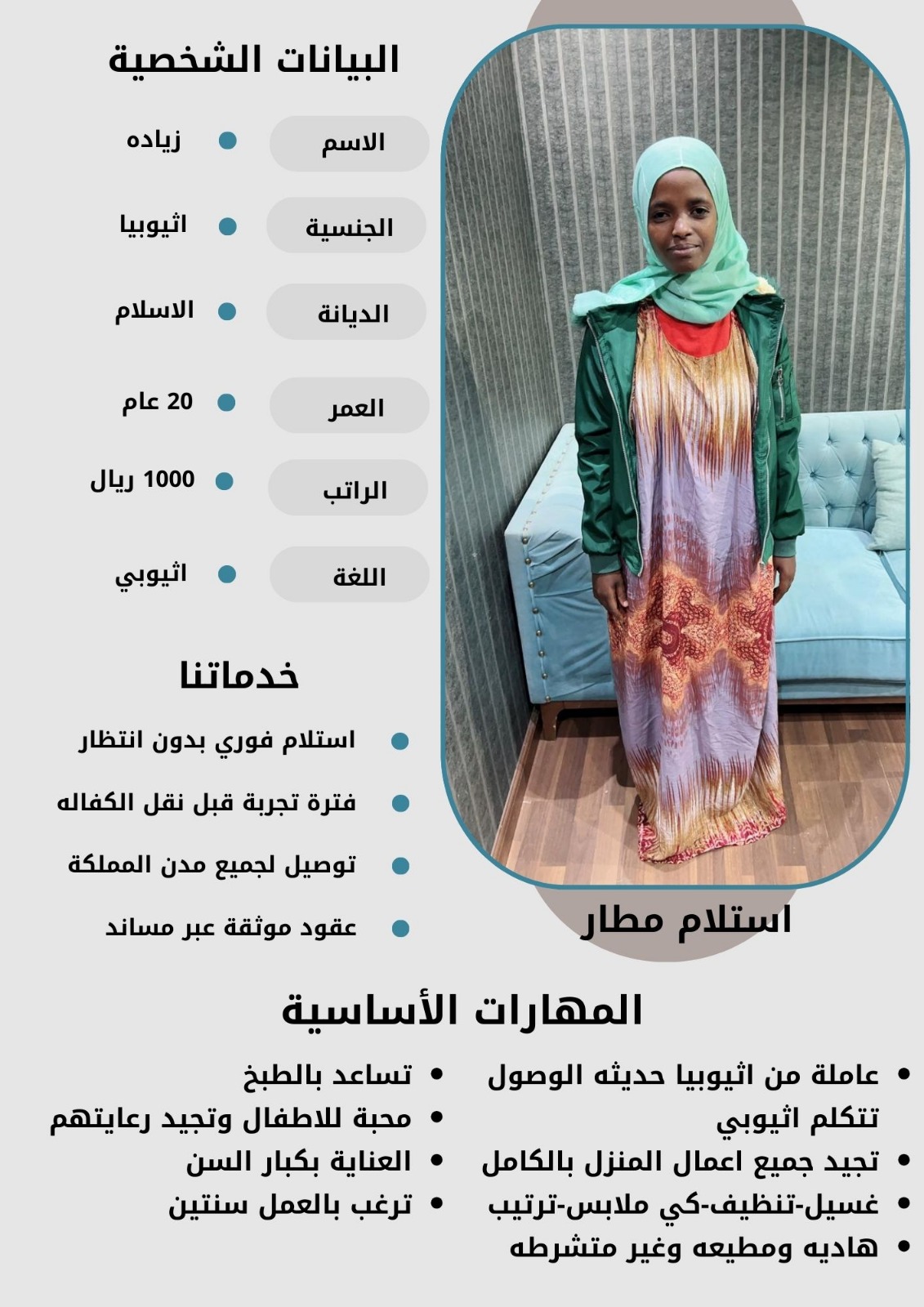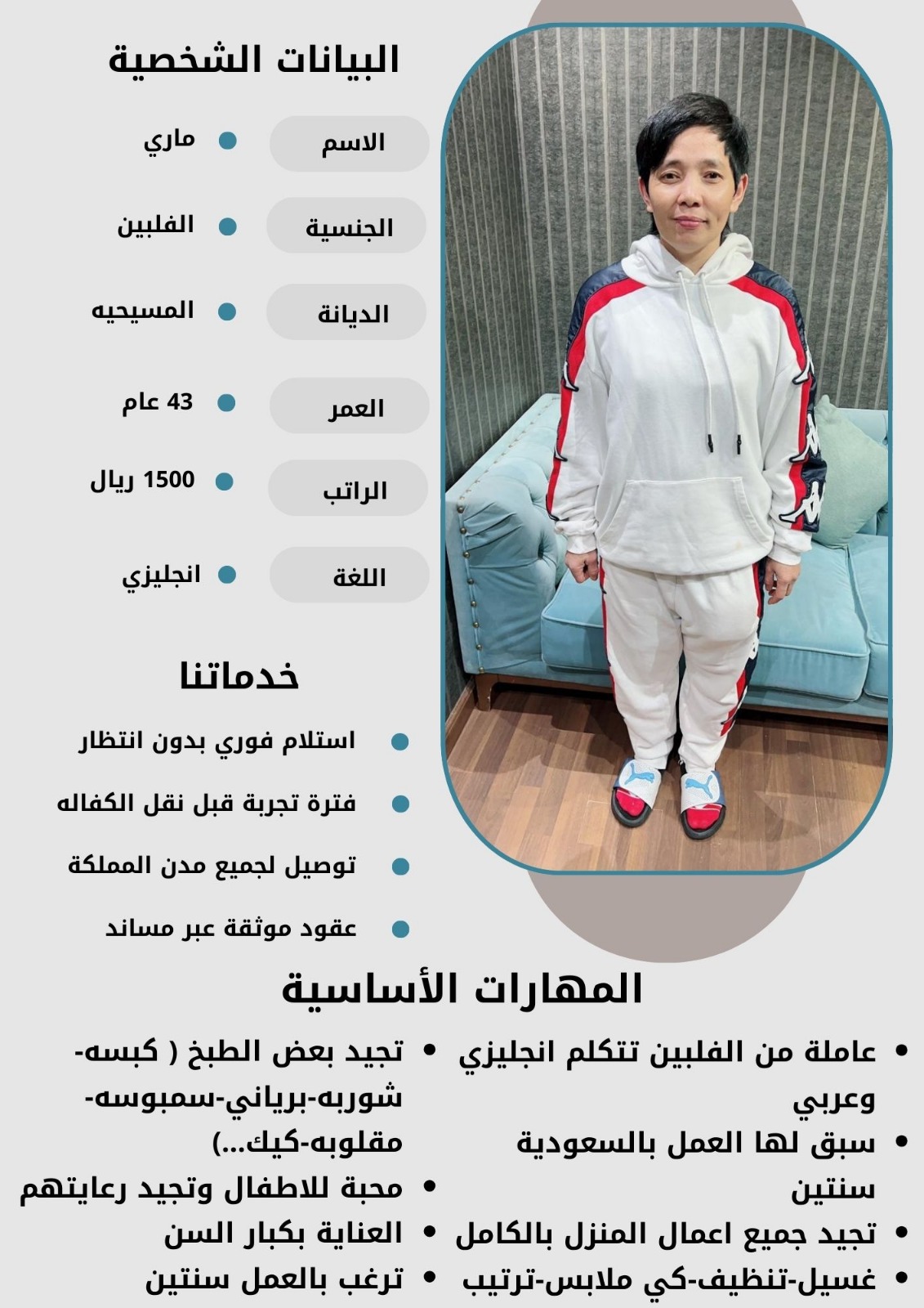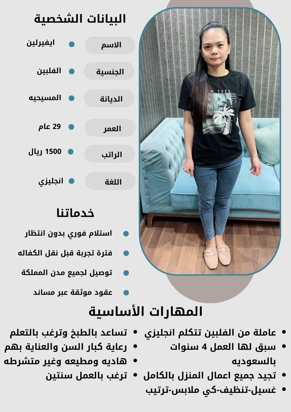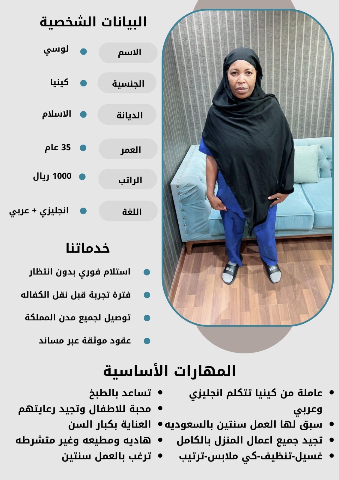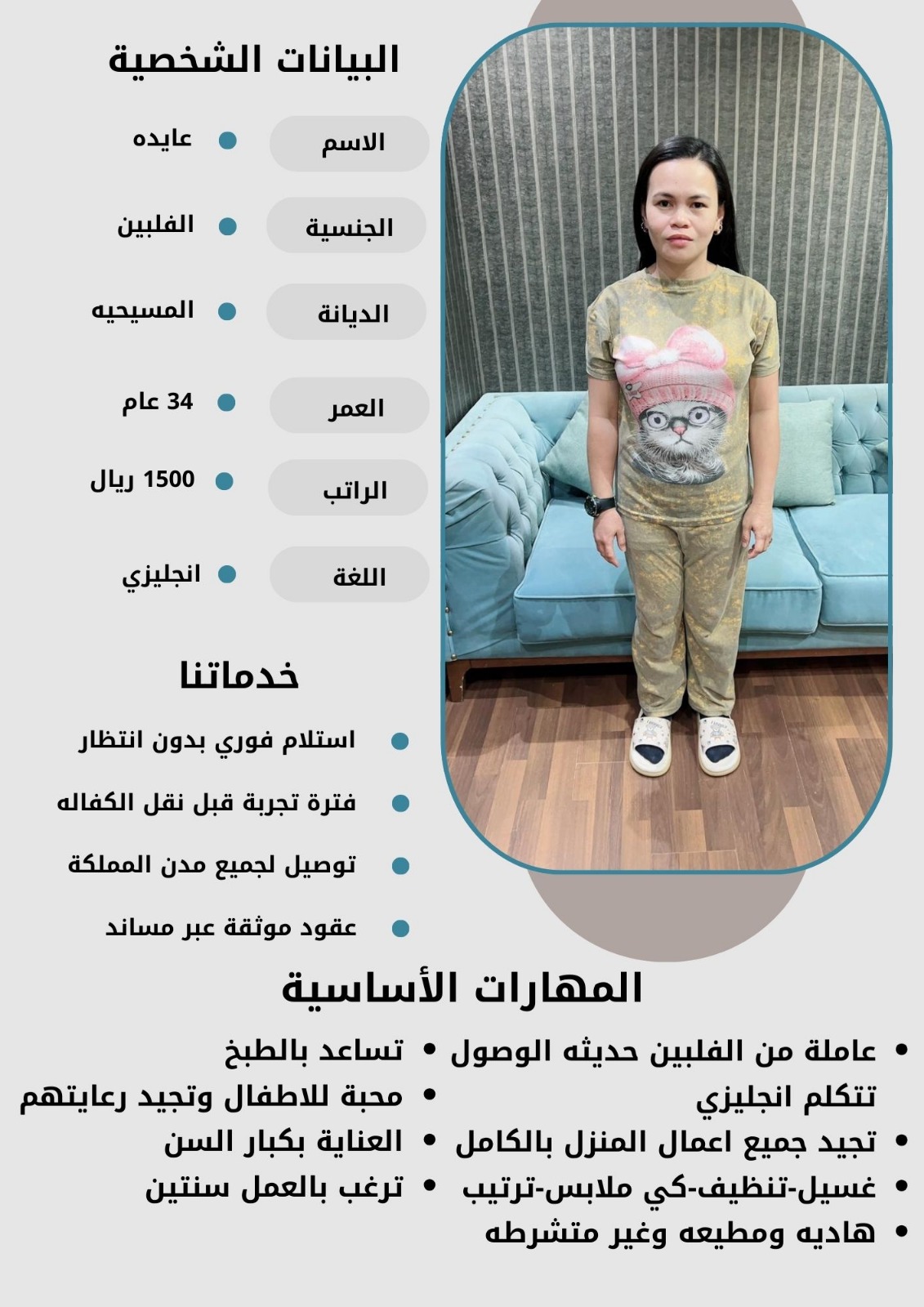 - نقدم لكم خيارات متعددة من العاملات بمختلف الجنسيات والأعمار لتناسب احتياجاتكم الخاصة.