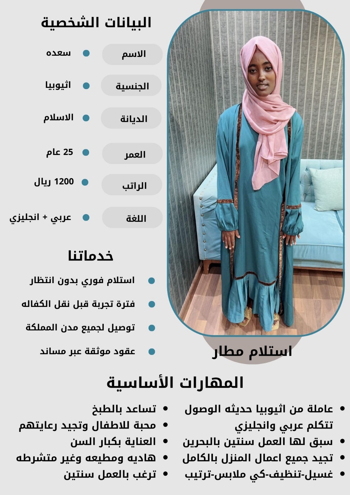 يمكنك تصفّح الصور واختر العاملة المناسبة لاحتياجات أسرتك مع ضمان الموثوقية والمتابعة بعد التعاقد.